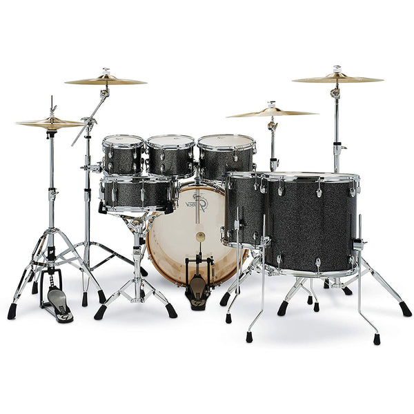 El casco de arce de fórmula Gretsch de 7 capas tiene bordes de rodamiento de 30 grados e interiores de casco natural. Los bombos incluyen espuelas de bombo telescópicas y aros de bombo de madera de arce a juego. Los toms y los tambores cuentan con aros de triple pestaña de 2,5 mm. Todos los tambores están equipados con parches Remo®.