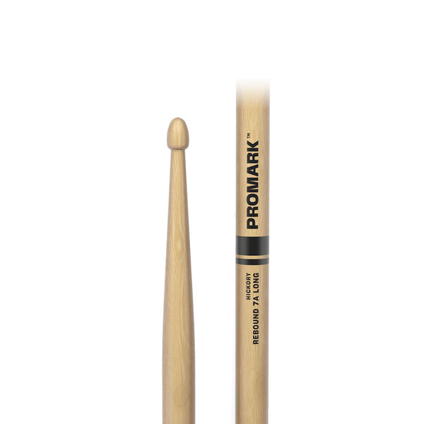 La baqueta ProMark Rebound 7A Long presenta 1/2" adicional de longitud para mayor alcance, con el mismo diámetro, forma cónica y punta bellota que la Rebound 7A estándar.