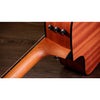 El núcleo de su potencia sonora es su tapa de abeto (pícea) macizo torrefactado, que proporciona una proyección clara y una respuesta dinámica inmediata. Gracias al proceso de torrefacción, la madera ofrece una calidez madura desde el primer día. El fondo y los aros de sapeli contrachapado no solo añaden equilibrio tonal, sino que ofrecen una resistencia superior a los cambios climáticos, convirtiéndola en la compañera ideal para músicos que viajan o están constantemente de gira.