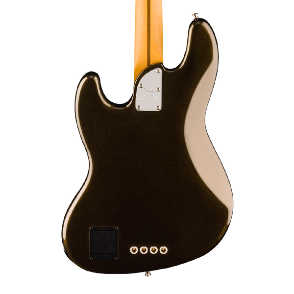 El American Ultra II Jazz Bass combina refinamientos modernos con la tradición del Jazz Bass. Cuerpo de aliso contorneado gloss, mástil de arce quartersawn perfil Modern D con acabado Ultraburst y diapasón de ébano compound radius. Incluye pastillas Ultra II Noiseless Vintage Jazz Bass, preamplificación activa 18‑V con EQ de 3 bandas, switch S‑1 activo/pasivo, puente HiMass ajustable y afinadores Vintage Paddle.