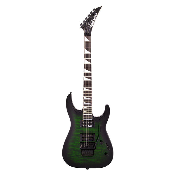 Impulsado por pastillas humbucking Jackson duales de alto rendimiento de montaje directo con imanes cerámicos, el JS32Q DKA también cuenta con una hoja de tres vías, controles únicos de volumen y tono, puente de trémolo de doble bloqueo con licencia Floyd Rose® de la marca Jackson, botones de correa estándar y sellado. Sintonizadores de fundición.