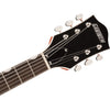 Vivo y resonante, el G5420T también cuenta con un diseño de control mejorado y versátil que incluye volumen maestro con circuito de sangrado de agudos, tono maestro, controles de volumen de captación individuales e interruptor de palanca de captación de tres posiciones, orificios F encuadernados de gran tamaño, encuadernación de cuerpo de varias capas, latencia más pequeña - Clavijero encuadernado G6120 de los años 50, clavijeros abiertos de estilo antiguo, cejilla Graph Tech NuBone, incrustaciones de miniaturas Neo-Classic perladas, puente Adjusto-Matic asegurado y cordal de vibrato Bigsby B60.