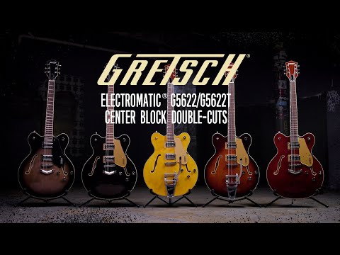 Las guitarras eléctricas Electromatic® Center Block están diseñadas para ese sonido Gretsch puro y potente a gran volumen. El bloque central G5622T Electromatic® con Bigsby® presenta un cuerpo de arce de doble corte con bloque central de abeto con cámara para resonancia dinámica, alta potencia de ganancia y comodidad ligera. Las pastillas humbucking Dual Black Top Broad'Tron, brindan agudos con un tono dinámico y articulado para un golpe sonoro mejorado. Aprovecha de manera flexible su potencia sónica con un diseño de control versátil que consiste en un control de volumen maestro con circuito de purga de agudos, tono maestro, controles de volumen de pastilla de puente y mástil e interruptor de palanca de tres posiciones.