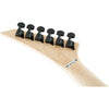 Disponible en varios acabados llamativos, el JS32 DKA también cuenta con encuadernación de mástil blanco y herrajes completamente negros que incluyen un puente de trémolo de doble bloqueo Floyd Rose de la marca Jackson, botones de correa estándar y afinadores de fundición.