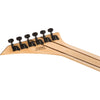 Con el estilo distintivo de Jackson, el Pro Plus DKA está disponible en una variedad de acabados con clavijero puntiagudo de 6 en línea a juego y hardware completamente negro, que incluye afinadores fundidos a presión sellados y botones de correa de bloqueo Jackson®.