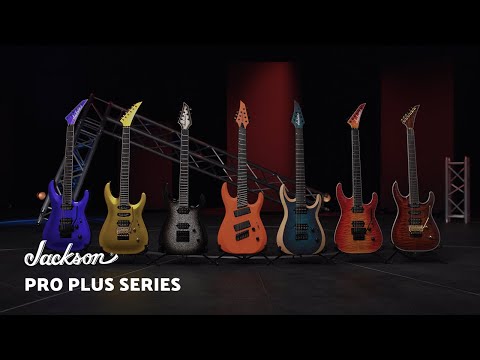 Con el estilo distintivo de Jackson, el Pro Plus DKA está disponible en una variedad de acabados con clavijero puntiagudo de 6 en línea a juego y hardware completamente negro, que incluye afinadores fundidos a presión sellados y botones de correa de bloqueo Jackson®.