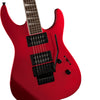Elegante y letal con el exclusivo clavijero negro puntiagudo de 6 en línea de Jackson, la SLX DX está disponible en una variedad de acabados dignos del escenario, incluido este diseño en Red Crystal con herrajes negros.