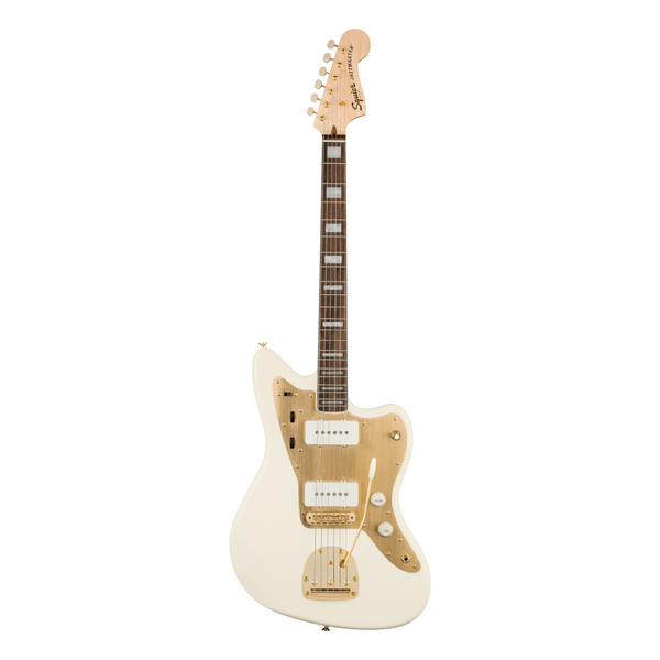 Guitarra Eléctrica Squier 40th Anniversary Jazzmaster, Gold Edition con mástil de laurel - Olympic White
