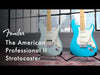 La American Professional II Stratocaster se basa en más de sesenta años de innovación, inspiración y evolución para satisfacer las demandas del músico de hoy en día. Nuestro popular mástil "Deep C" ahora tiene bordes de diapasón redondeados, un acabado satinado "Super-Natural" y un talón de mástil recién esculpido para una sensación sumamente cómoda y de fácil acceso al registro superior. Las nuevas pastillas de bobina simple V-Mod II Stratocaster son más articuladas que nunca y conservan la calidez y el timbre de campana. Un trémolo mejorado de 2 puntos con un bloque de acero laminado en frío aumenta el sustain, la claridad y el brillo de alta gama. La American Pro II Stratocaster tiene al sonido y sensación clásicos pero con amplias mejoras que se suman a las habituales para marcar un nuevo estándar para instrumentos profesionales.