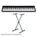 El pack se completa con el soporte Quik Lok T-10, soporte metálico tipo “X”, resistente, plegable y con capacidad de carga de hasta 72 kg, ideal para pianos digitales de 88 teclas. Su estructura garantiza estabilidad, comodidad y correcta postura al tocar.