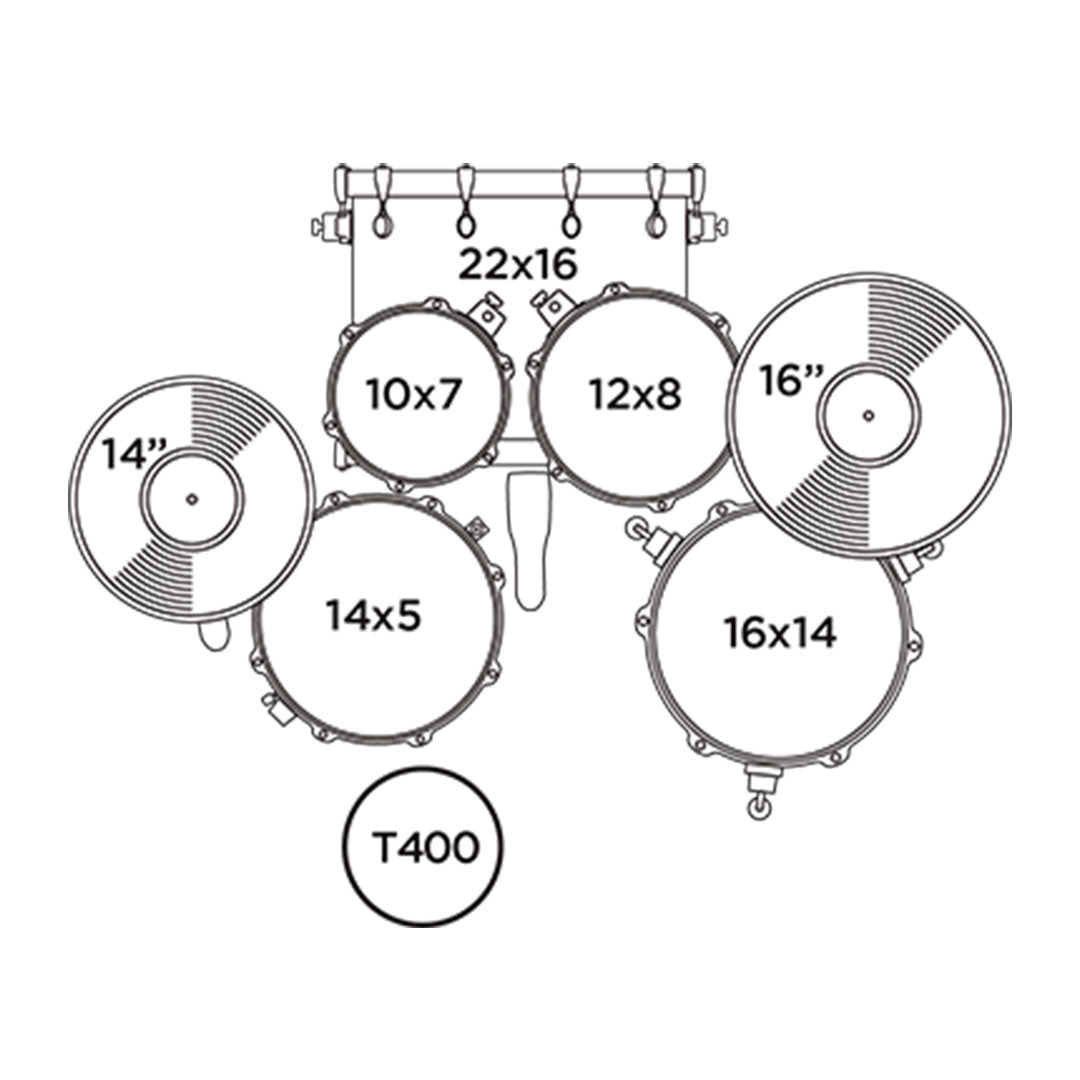 | Hardware Incluido | Soporte Platillo C250, Soporte Tarola S250, Soporte Hi-hat H250, Pedal Simple P250, Trono T400 |