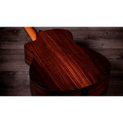 El carácter sonoro de este modelo se define por su tapa de abeto torrefactado macizo, la cual ha sido sometida a un proceso especial de tostado que le otorga la profundidad y calidez propias de un instrumento con años de uso, manteniendo una claridad y proyección excepcionales. El fondo y los aros de palisandro de India, considerada una de las mejores maderas tonales por su versatilidad y tradición, complementan el conjunto con un rango tonal equilibrado y elegante.