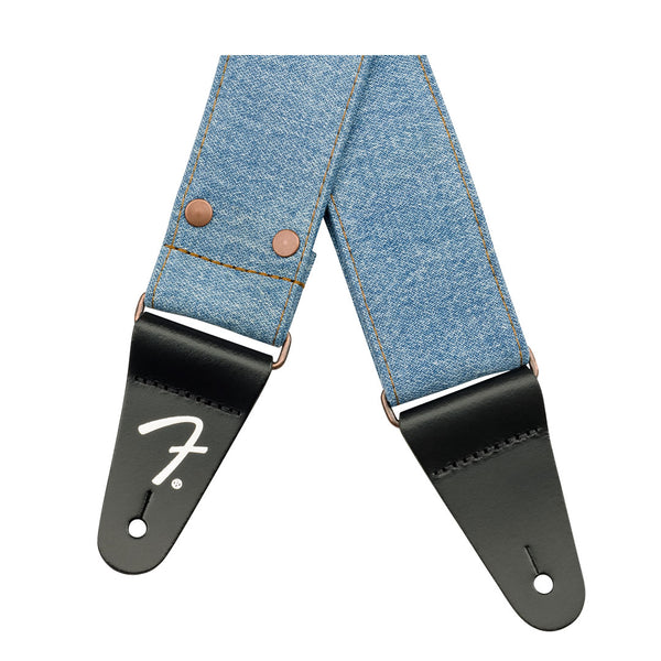 Una correa que se ajusta tan cómodamente como tu par de jeans favoritos, las correas de denim Fender® X Wrangler® son la manera perfecta de agregar más estilo a su Fender. Fiel al diseño icónico de los bolsillos, estas correas cuentan con costuras doradas, parches de cuero personalizados y remaches de cobre .