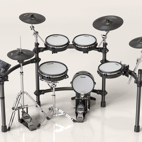 El DM-8 es el kit de batería más nuevo de NUX que presenta tecnologías innovadoras, brindando a los bateristas una sensación acústica auténtica y una interpretación expresiva realista. La DM-8 cuenta con un sistema de racks robusto que no solo es duradero sino que se ve genial cuando estás rockeando.