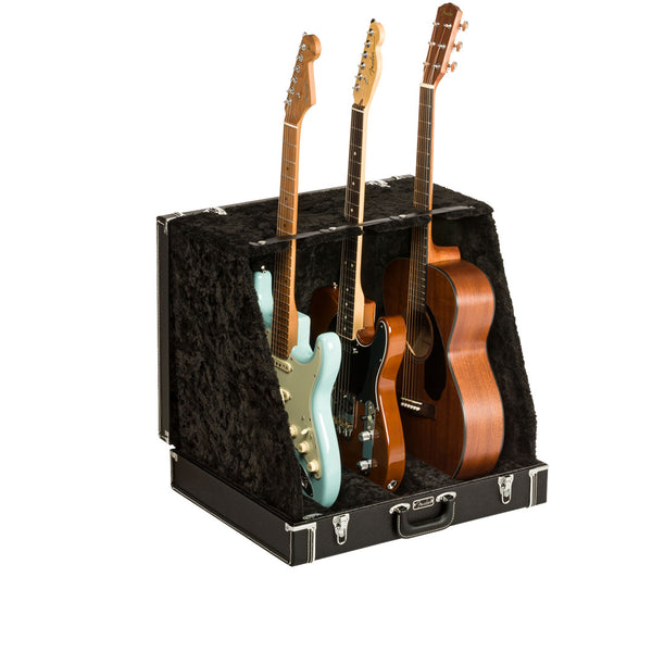 Los soportes para cajas de instrumentos Fender son una excelente manera de exhibir y proteger múltiples instrumentos. Este soporte para estuche parece un estuche tradicional, pero se convierte fácilmente en un soporte para guitarra digno de un escenario. Elaborado con materiales confiables para la carretera, este estuche rígido de madera de 3 capas cuenta con un asa de transporte de acero forrada en vinilo y pestillos de acero. El suave forro interior de felpa acrílica triturada garantiza que sus guitarras permanezcan libres de rayones y daños.