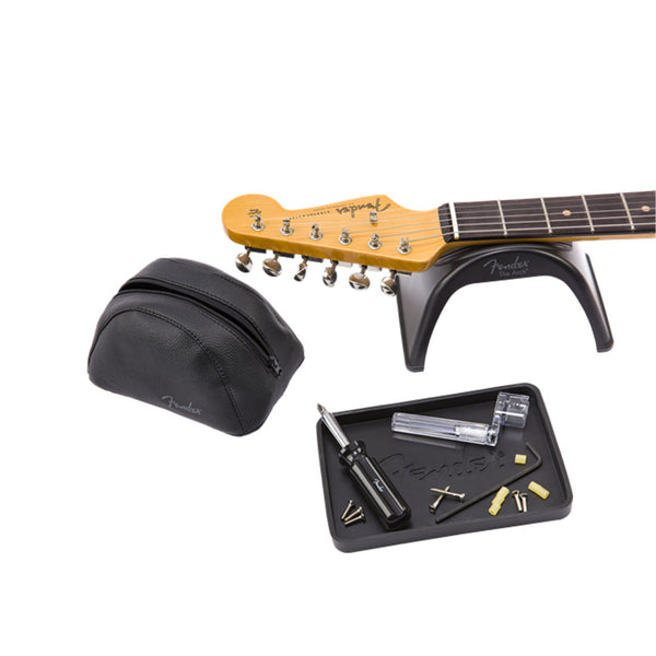 Reparar o modificar una guitarra en el campo puede ser un desafío sin el equipo adecuado. Arch Workstation es una solución conveniente que facilita llevar todas sus herramientas esenciales a donde quiera que vaya. Este kit cuenta con el reposacabezas The Arch ultraestable, que está hecho de caucho TPE nitro-safe e incluye pies antideslizantes para evitar que se mueva. También obtienes una base de goma TPE que se puede usar como soporte para el cuerpo de tu guitarra o para sujetar piezas sueltas durante las reparaciones, junto con una bolsa de piel sintética con suficiente espacio para guardar herramientas de reparación como limas, cortadores de cuerdas y enrolladores de cuerdas. , cuerdas adicionales y llaves de ajuste. Portátil y práctica, la Arch Workstation es la estación de mantenimiento móvil ideal.