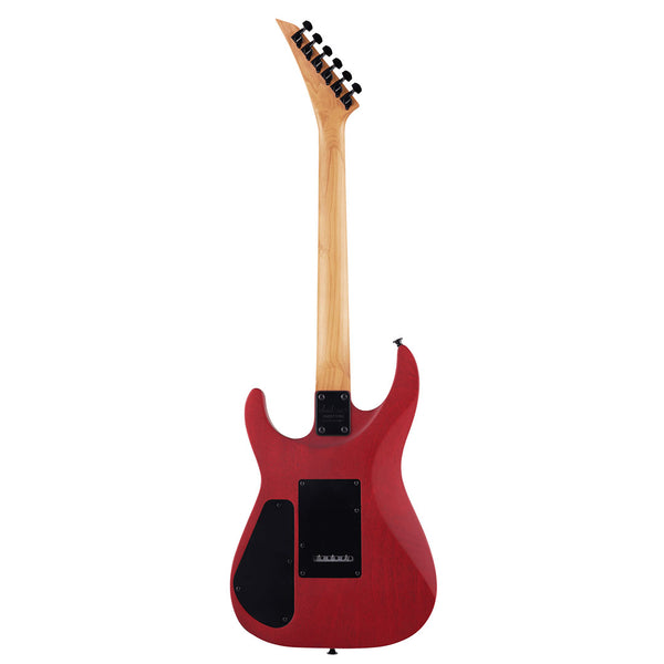 Otras características incluyen dos pastillas humbucking Jackson de alto rendimiento con imanes de cerámica y conmutación de hoja de pastilla de tres vías, controles de tono y volumen únicos, puente de trémolo de fulcro sincronizado, botones de correa estándar y sintonizadores fundidos a presión.
