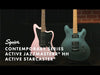 La Squier® Contemporary Active Jazzmaster® HH conmemora un modelo mítico de Fender, aportando elementos modernos y una estética atrevida, para satisfacer las demandas de los guitarristas más intrépidos. Esta guitarra se basa en un par de pastillas humbucking de imán de cerámica activas Squier SQR ™ alimentadas por electrónica de 9 voltios. Todo esto produce un nivel muy alto de salida. El mástil de arce tostado fue elegido por su perfecto tono y estabilidad; además, su talón contorneado te da fácil acceso al traste 22. Elementos de alto rendimiento completan la lista de características de la guitarra, en particular un puente con vibrato de 2 puntos que permite lograr flexiones mientras se disfruta de un toque óptimo; y clavijeros sellados con ejes divididos para facilitar la afinación y el cambio de cuerdas. Su estilo tampoco te dejará indiferente, en especial sus herrajes negros y su elegante pala pintada y adornada con logos cromados del más bello efecto.
