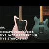 La Squier® Contemporary Active Jazzmaster® HH conmemora un modelo mítico de Fender, aportando elementos modernos y una estética atrevida, para satisfacer las demandas de los guitarristas más intrépidos. Esta guitarra se basa en un par de pastillas humbucking de imán de cerámica activas Squier SQR ™ alimentadas por electrónica de 9 voltios. Todo esto produce un nivel muy alto de salida. El mástil de arce tostado fue elegido por su perfecto tono y estabilidad; además, su talón contorneado te da fácil acceso al traste 22. Elementos de alto rendimiento completan la lista de características de la guitarra, en particular un puente con vibrato de 2 puntos que permite lograr flexiones mientras se disfruta de un toque óptimo; y clavijeros sellados con ejes divididos para facilitar la afinación y el cambio de cuerdas. Su estilo tampoco te dejará indiferente, en especial sus herrajes negros y su elegante pala pintada y adornada con logos cromados del más bello efecto.
