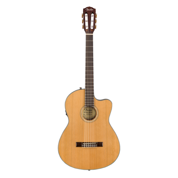 El CN-140SCE proporciona una experiencia sumamente cómoda para jugadores de cualquier nivel de habilidad: el cuerpo de concierto 'thinline' lo convierte en una guitarra perfecta para la sala de estar y el escenario, mientras que el corte único facilita el acceso a trastes más altos. Cuando surge la necesidad de enchufar, la electrónica integrada Fishman® de este modelo proporciona un control tonal directo pero potente.