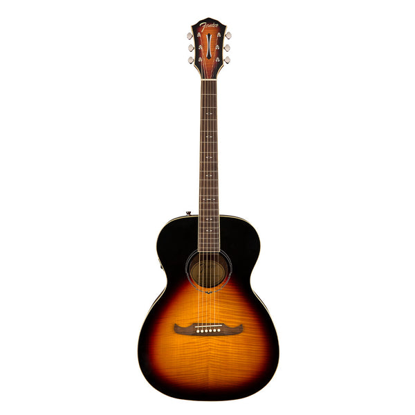 Visualmente impresionante, con una hermosa tapa de arce flameado, el FA-235E ofrece el legendario sonido Fender a un precio económico. La construcción laminada de calidad con un cabezal Fender 3 3 moderno y el puente Viking crean un instrumento fácil de tocar que suena genial. Electrónica moderna de Fishman que le permite llevar su sonido al escenario con facilidad. Los músicos en desarrollo y experimentados apreciarán el mástil de caoba que le da a la guitarra un tono vivo mientras complementa la parte superior de arce flameado.