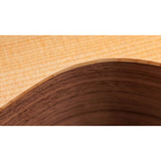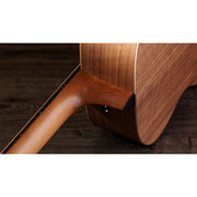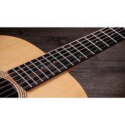 El mástil patentado de Taylor ha sido optimizado en este modelo para facilitar la formación de notas y acordes. Presenta una longitud de escala más corta de 24-7/8 pulgadas y un ancho de cejuela de 1-11/16 pulgadas, lo que, sumado a una acción baja y cuerdas de calibre ligero, resulta en una experiencia de interpretación sumamente suave. La tapa de abeto macizo torrefacto aporta una calidez y profundidad sazonada que complementa perfectamente la claridad del fondo y los aros de nogal.