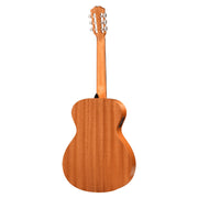 Una de las características más destacadas y poco comunes en guitarras de este rango de precio es su reposabrazos (armrest) tallado. Este detalle ergonómico elimina el borde afilado del cuerpo de la guitarra, permitiendo que el brazo derecho descanse de forma natural y sin presión. Además, su cejuela de 1-7/8" proporciona el espacio justo entre cuerdas para facilitar la técnica clásica sin forzar la mano, ofreciendo una transición suave para quienes vienen de guitarras de cuerdas de acero.