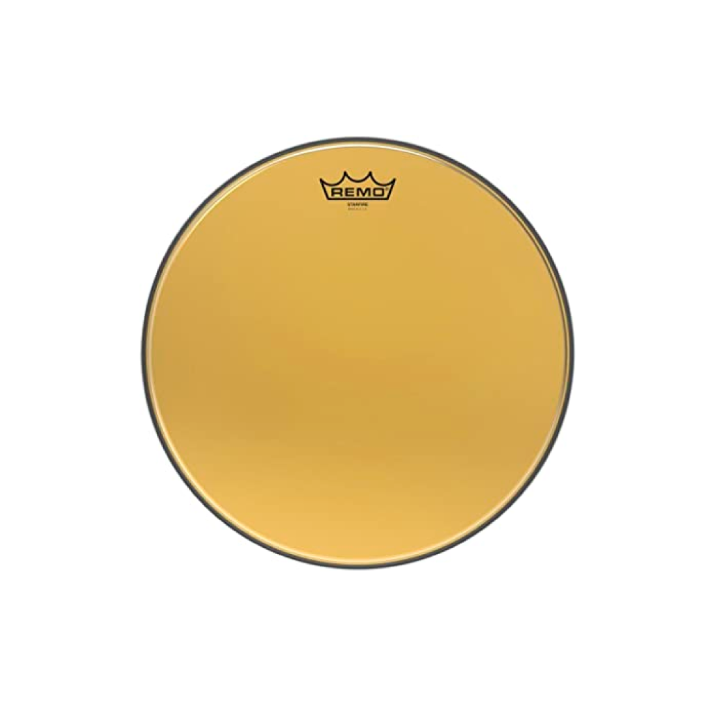 El acabado dorado de los parches Starfire Gold es más que una simple capa estética; su superficie reflectante es capaz de capturar y rebotar la iluminación del escenario de forma espectacular, lo que los convierte en una elección predilecta para configuraciones que buscan un impacto visual de alta gama. Este acabado, sumado a la tecnología de laminado de Remo, asegura que el parche mantenga su brillo característico incluso después de largas sesiones de uso, siendo un elemento que aporta distinción a cualquier configuración de batería.