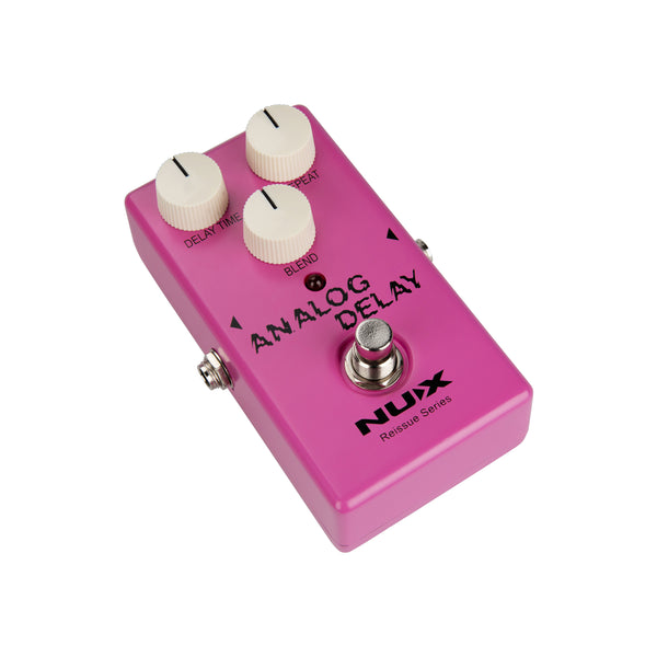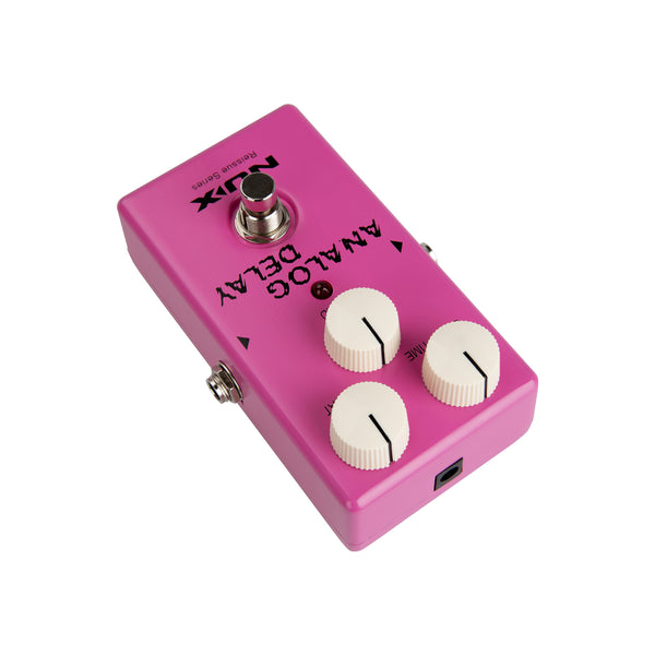 El pedal NUX ANALOG DELAY de la serie Reissue tiene un circuito 100% analógico con chips BBD 3205 y 3102. Le brinda el efecto de retardo analógico de sonido cálido de los años 80. ¡Experimente el efecto aumentando la repetición y ajustando la perilla DELAY TIME!