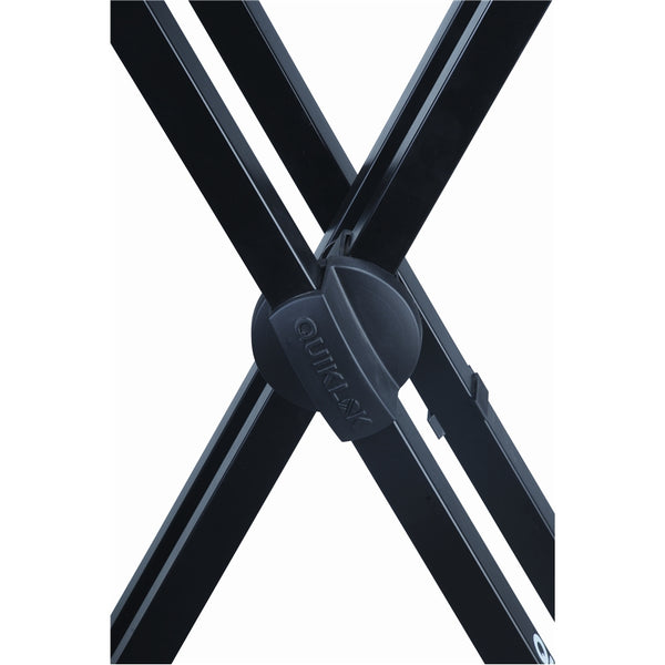El T-550 es un soporte de teclado tipo "X" de doble refuerzo, de alta resistencia, equipado con nuestro sistema de ajuste de altura Trigger Lok. El ingenioso sistema Trigger Lok diseñado por QUIK-LOK alberga cinco posiciones de altura de bloqueo positivo y está completamente sellado sin exponer partes. El mecanismo le permite al usuario abrir y cerrar instantáneamente el soporte desde los niveles superiores sin tener que empujar o tirar de ninguna perilla o botón en el disco central, sino simplemente apretando el gatillo y soltándolo una vez que el soporte esté en la posición deseada. El T-550 de un solo nivel también se puede expandir fácilmente al agregar el segundo nivel ajustable QLX/1 opcional o cualquiera de los accesorios QLX disponibles.