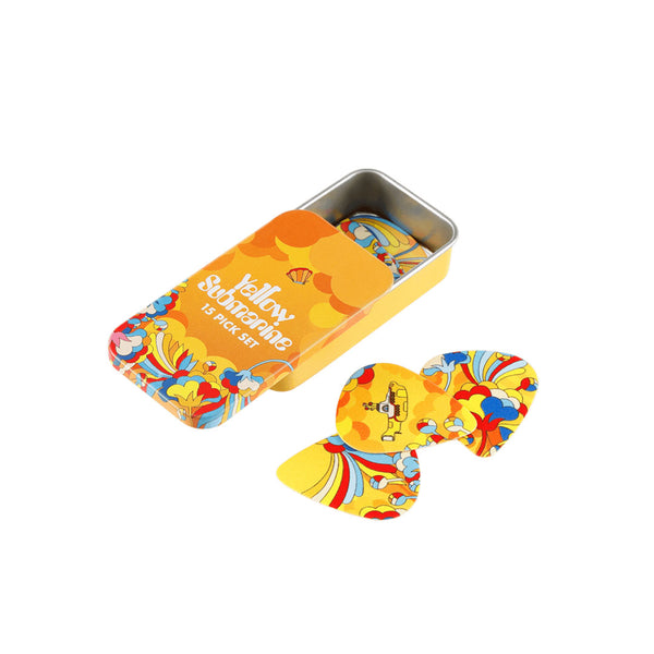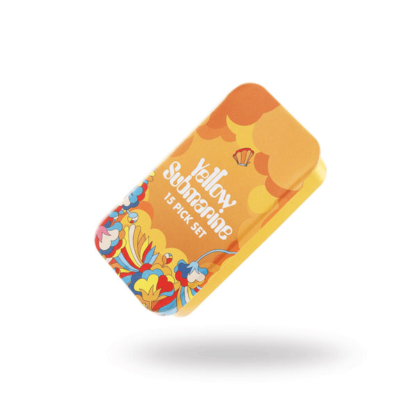 Para celebrar el 55 aniversario de su lanzamiento, D'Addario está conmemorando la icónica película animada de The Beatles "Yellow Submarine". Esta lata de púas de guitarra de edición limitada presenta una obra de arte exclusiva inspirada en el aspecto animado de la película y sus personajes. Coge estas selecciones y sumérgete en el mundo surrealista y psicodélico de Yellow Submarine.